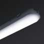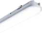 IP65 DALI Feuchtigkeitsbeständige LED-Leuchte mit mattem Diffusor für den Innen- und überdachten Außenbereich. Innovatives Design mit extralangen Montageschiebern (300 mm) für einfache Montage, somit ideal für Renovierungen. Das Design aus hochwertigem Polykarbonat (UV-stabilisiert) ist schlicht und schellenfrei und bietet dennoch einfachen aber sicheren Zugriff auf den Treiber. Gesamtlichtstrom: 4200 lm, Leuchten Leistung: 34 W, Lampeneffizienz: 123 lm/W, CCT: 4000K, Lebensdauer: 50.000h bei L80, Farbwiedergabe: CRI > 80, Farborttoleranz (initial MacAdam): 4, Schlagfestigkeit: IK08. Werkzeugfreie Montage, BESA-kompatibel. DALI-Treiber bietet Dimmbereich x bis 100% via DALI-2 und switchDIM. Gleichstromstärke einstellbar. Netzfrequenz 0/50/60 Hz. Geeignet für Notbeleuchtungssysteme gemäß EN 50172. Zubehör: Plug&Play-Notlichtset für 3 Stunden Umrüstung auf Notbetrieb (Selbsttest und manueller Test) und Aufhängung. Abmessungen: 1235 x 94 x 76 mm, Gewicht: 1,45 kg.