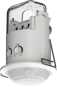Für die Deckeneinbaumontage im Innenbereich ist dieser weiße Bewegungsmelder mit Schutzart IP21 konzipiert. Sein runder 360° Erfassungsbereich detektiert bei einer Montagehöhe von 2,5 Metern quer gehende Bewegungen bis zu 6 Metern und sitzende Tätigkeiten bis zu 2 Metern. Die Beleuchtungssteuerung erfolgt automatisch über einen Lichtkanal (Relais 230 V), basierend auf Bewegung und Helligkeit mittels Mischlichtmessung. Als Vollautomat ist das Gerät dank werkseitiger Voreinstellungen (100 Lux, 2 Minuten Nachlaufzeit) sofort einsatzbereit, wobei Helligkeitsschaltwert und die Nachlaufzeit (bis 900 Sekunden) per Potentiometer justierbar sind.